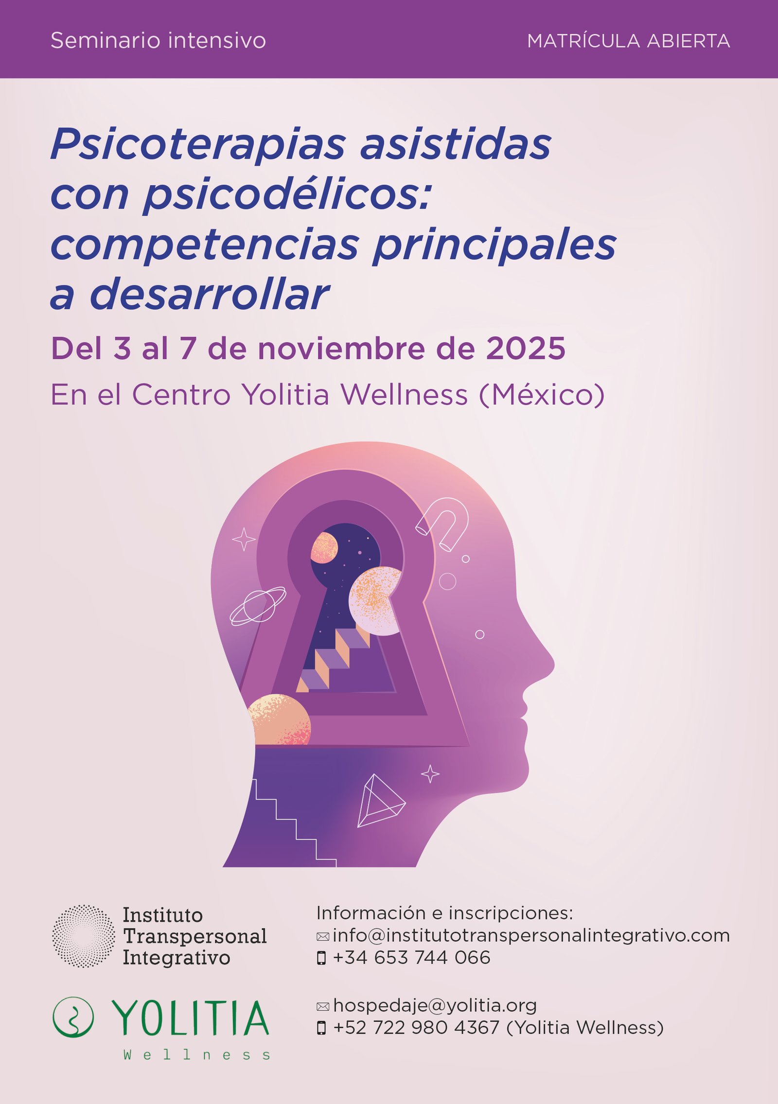Seminario intensivo residencial "Psicoterapia Asistida con Psicodélicos: Competencias Principales a Desarrollar", del 3 al 7 de Noviembre del 2025 en México